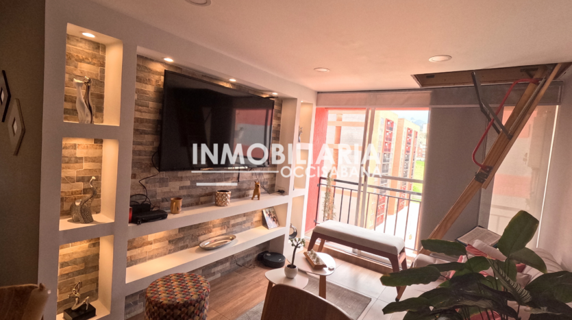 Lindo apartamento en venta de 62m, consta de sala comedor, cocina integral con horno, zona de lavado, estudio, baño auxiliar y 3 habitaciones con closet, la habitación principal cuenta con baño privado y balcón. Acabados modernos, luces LED, cortinas blackout, baños con división en vidrio, calentador a gas y altillo funcional totalmente terminado sobre sala-comedor (¡un plus increíble!) lo mismo en las dos habitaciones auxiliares con 30 metros adicionales construidos. Octavo nivel y acceso por ascensor